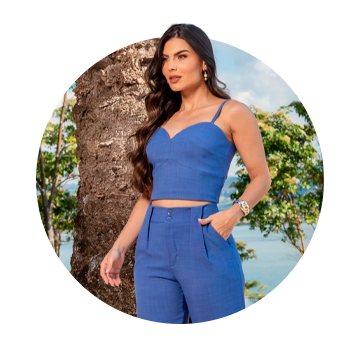 R$ 142,41 no pix Em até 12x de R$ 15,05 com jurosConjunto Feminino Cintura Alta com Blusa Transpassada e Calça Flare