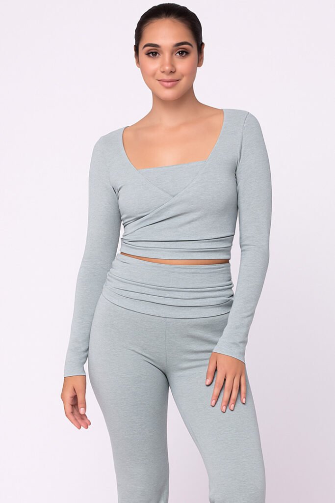Conjunto Feminino Cintura Alta com Blusa Transpassada e Calça Flare